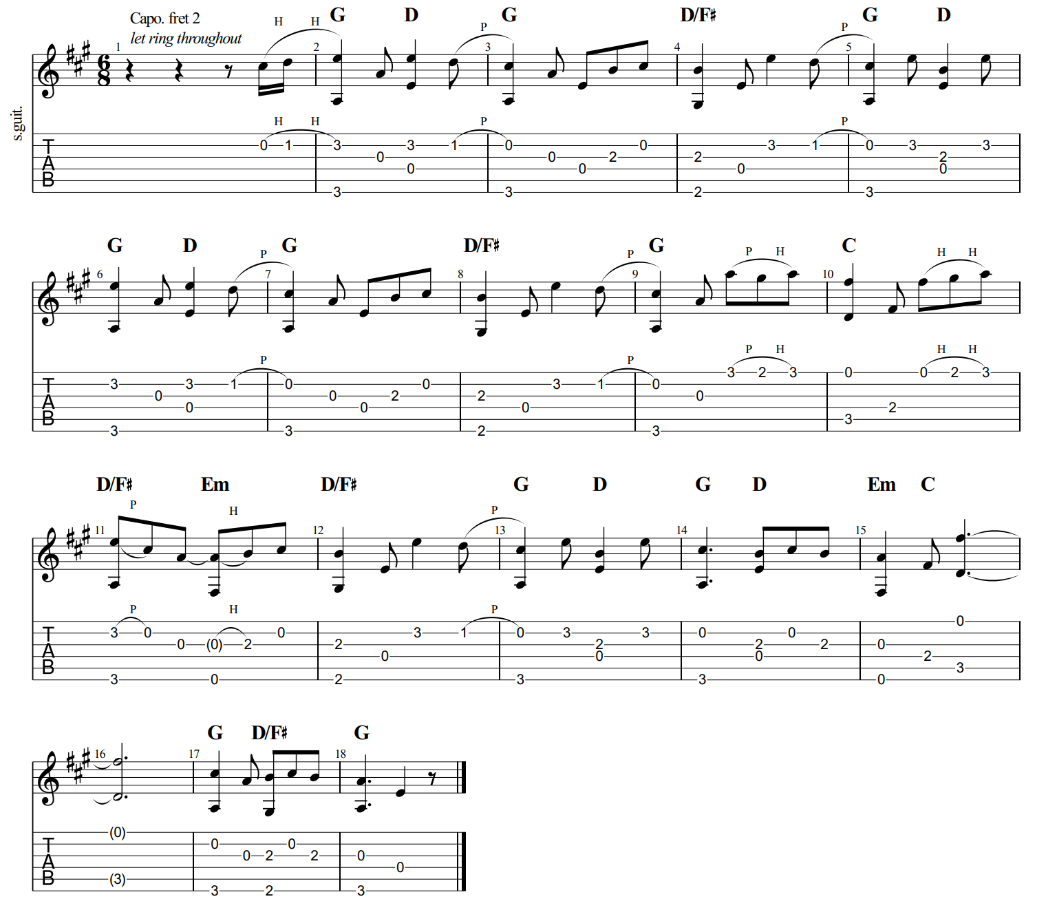 Ke zpracování jsem si zvolil tu nejnovější variantu, kdy kytaru místo Plíhala obsluhuje Petr Fiala. Tato verze je o trochu jednodušší než originál a je vidět, jak to Fiala hraje, tudíž jsem byl schopen si to poměrně rychle nacvakat do Guitar Pro. Dokonce jsem si pohlídal i správný 6/8 takt, takže ta tabulatura vypadá po dlouhé době celkem použitelně…