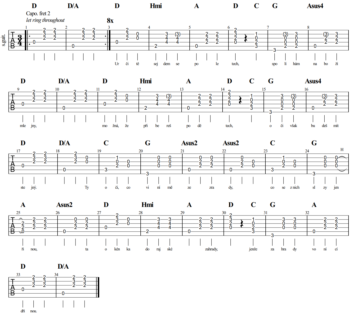 Zapomněl jsem na drobný detail a to kapodastr. Literatura říká „Obvykle v E dur, tj. s kapodastrem na 2. poli“ a Plíhal to tak hraje. Mě to ne zcela vyhovuje, tak si to hraju alespoň s capo I. nebo úplně bez.